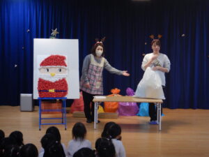5歳児を対象に、学校薬剤師の方が「元気な身体の作り方」「薬ってどんなもの?」という話をしにきてくださりました。
