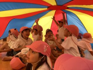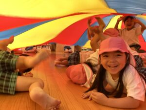 今年も4歳児クラスは運動会でパラバルーンに挑戦します! まずはみんなでパラバルーンってなに?どんなもの?ということで、思いっきり遊んでみることに。 去年の4歳児クラスのお兄さん・お姉さんがしていた憧れのパラバルーンなので みんなで大はしゃぎ!! たくさん遊んでたくさん触ってたくさん動いてたくさん楽しみました。