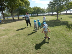 うらら組にとっては、はじめてのメリケンパーク。広い芝生に心ワクワクさせて、遊びました。